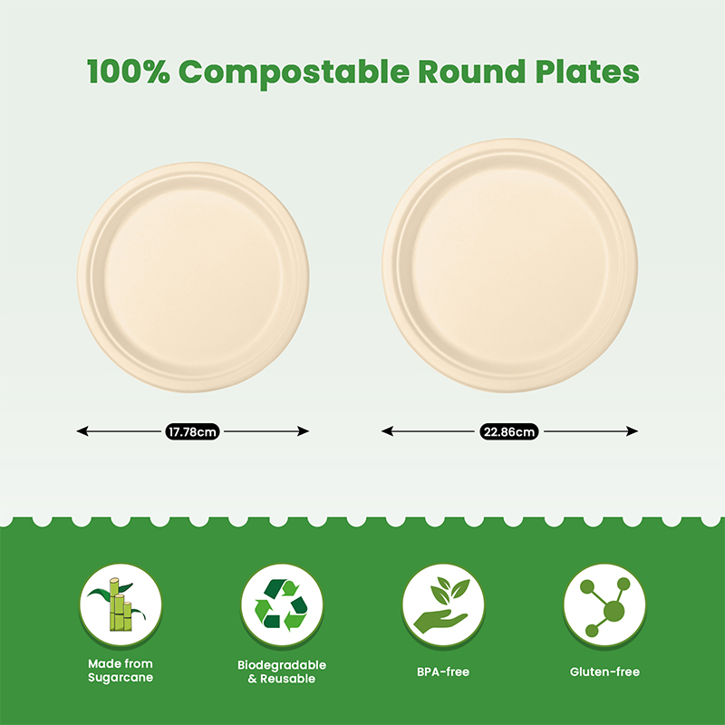Biodegradable Round Plates provide a reliable and eco-friendly solution for food service businesses that want sustainable disposable tableware. Restaurants, catering companies, and takeaway food providers increasingly prefer compostable plates that reduce plastic waste while maintaining strong performance during meal service. Our Biodegradable Round Plates are manufactured from renewable sugarcane bagasse, making them a practical and environmentally responsible alternative to plastic or foam plates.